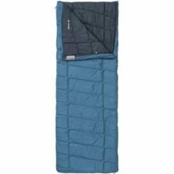A single layer of synthetic insulation is used to create a lightweight sleeping bag suitable for warmer conditions